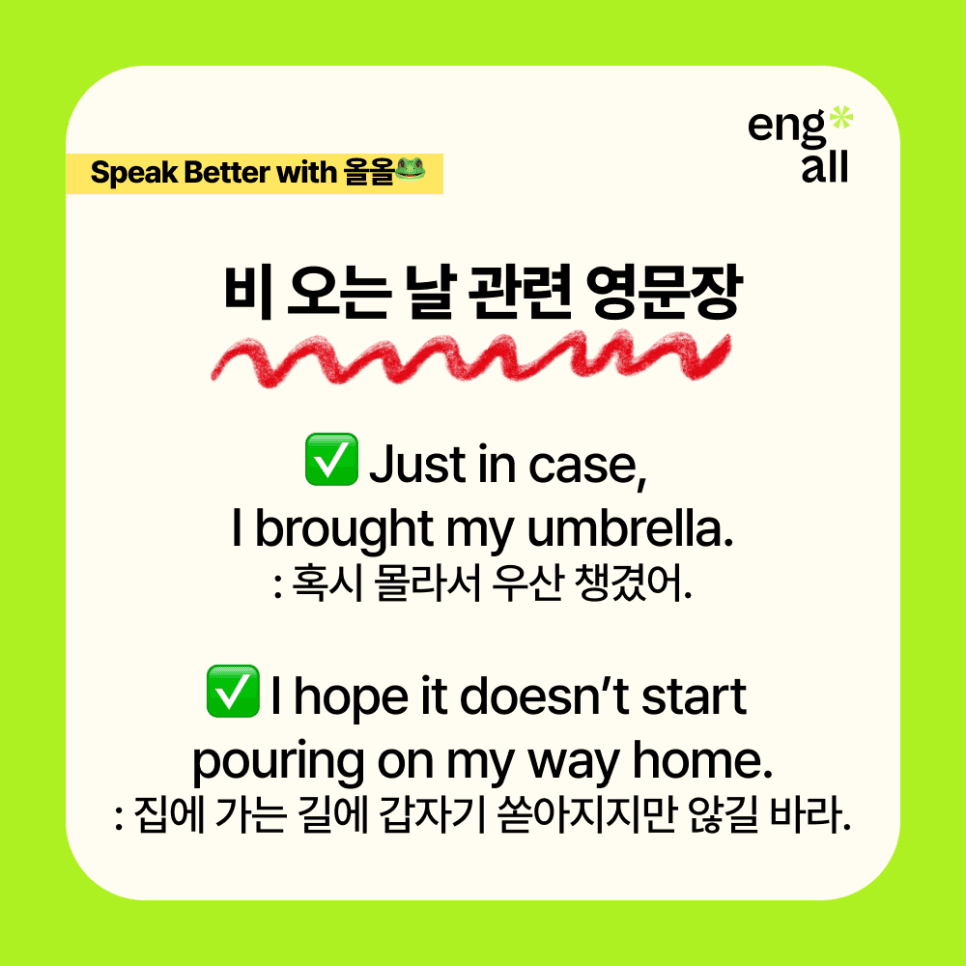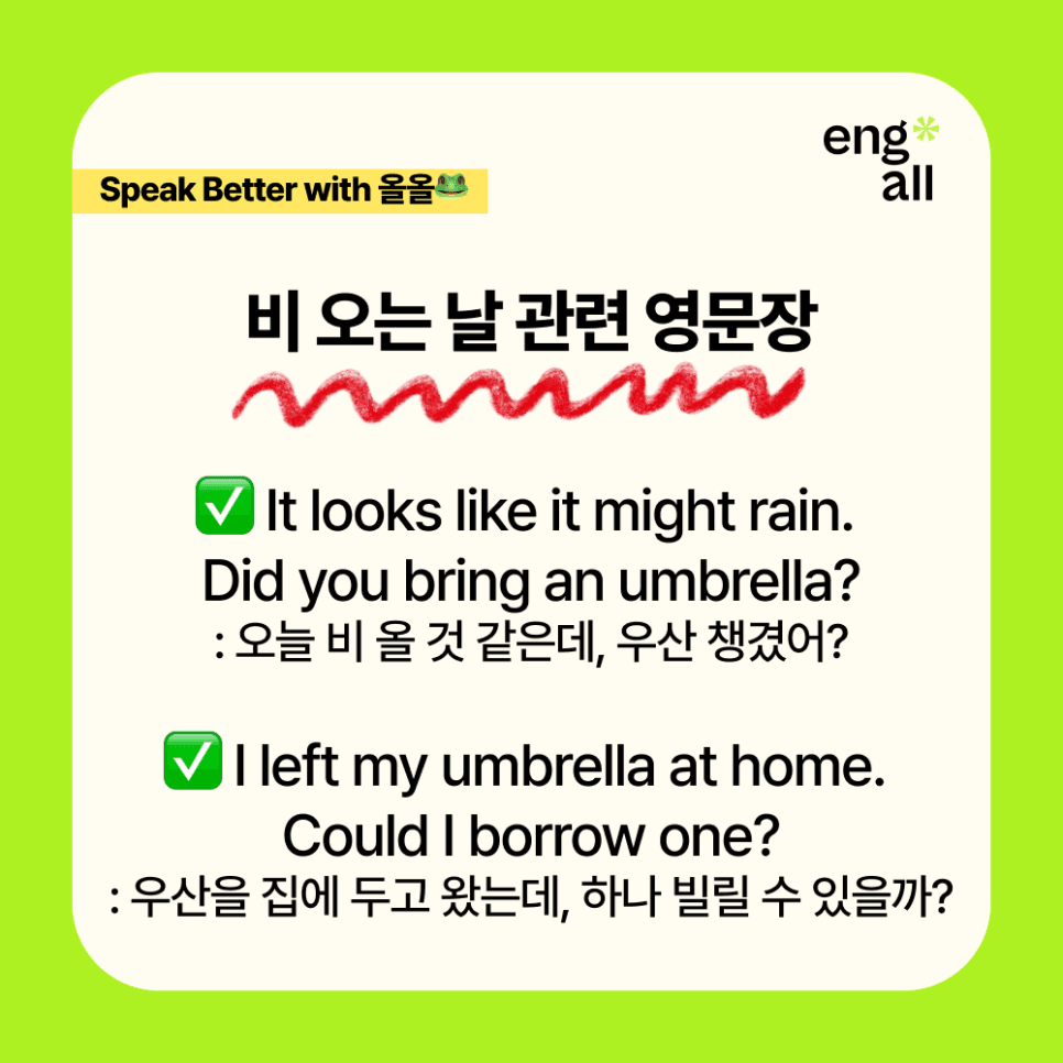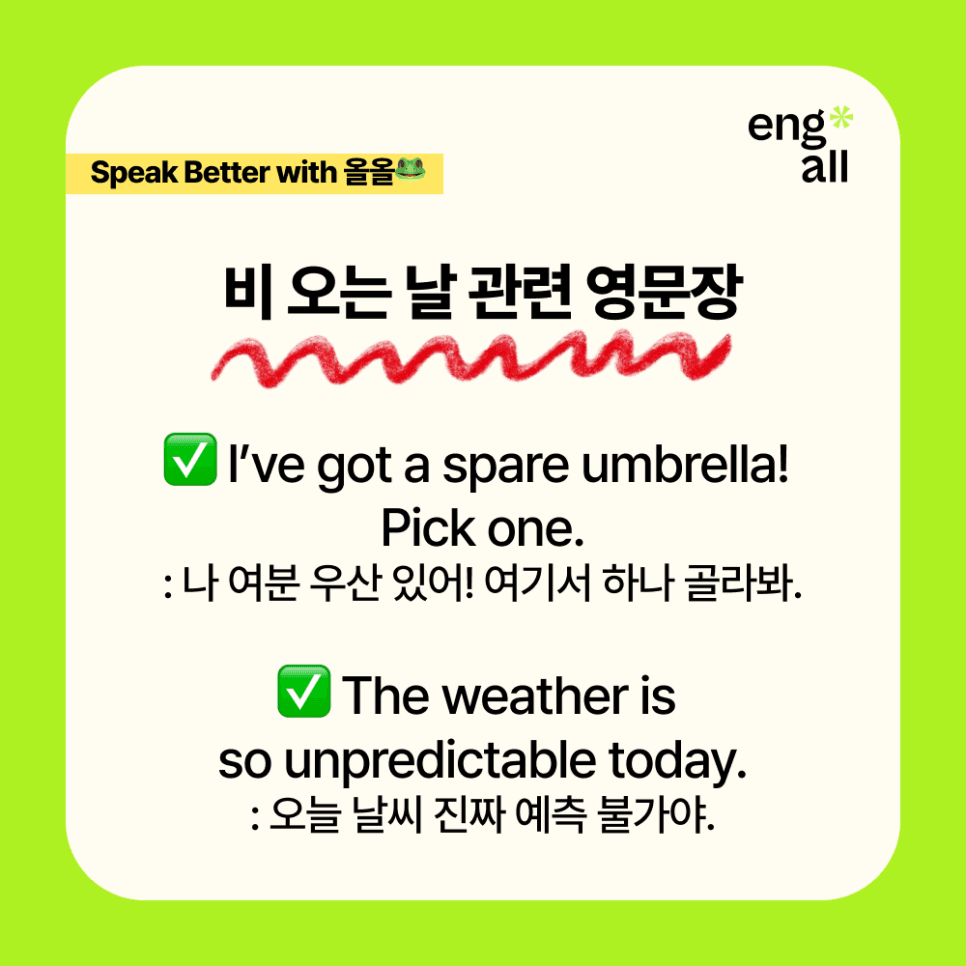 정말 활용도 높은 영어 회화 표현이니 꼭 기억해두세요🐸